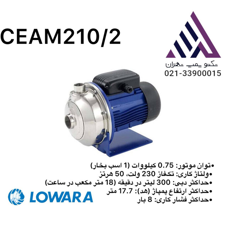 پمپ سانتریفیوژ Lowara CEAM 210/2-V/A یک پمپ تکفاز با بدنهای از استنلس استیل AISI 304 است که برای کاربردهای خانگی، صنعتی سبک، کشاورزی و فرآیندهای غذایی مناسب میباشد.