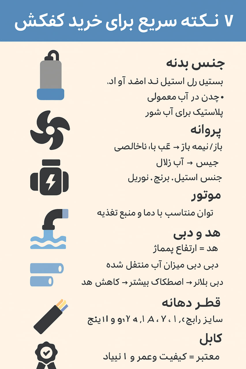 سیستم حفاظتی: مجهز به فلوتر برای کنترل سطح آب و جلوگیری از خشککار کردن پمپ