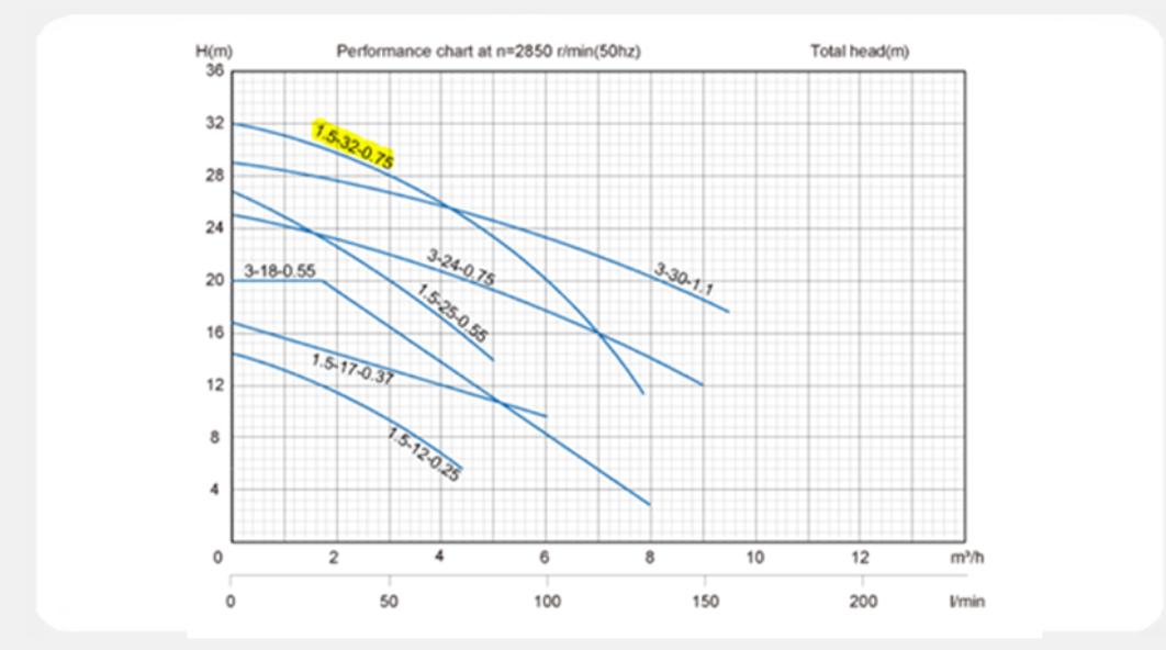 حداکثر ارتفاع پمپاژ (هد): 32 متر