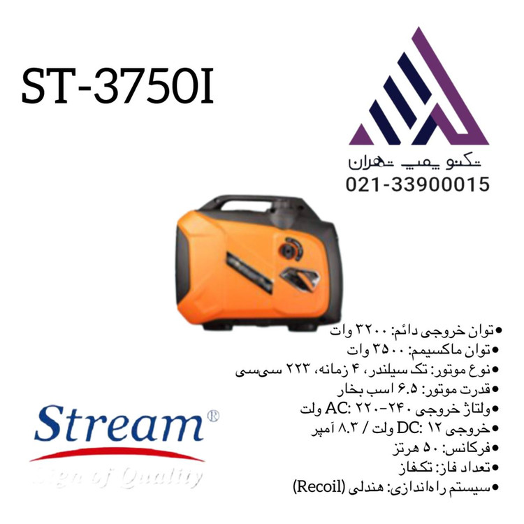 موتور برق بنزینی استریم مدل ST-3750i یک ژنراتور اینورتردار با توان ۳.۵ کیلووات است که برای مصارف خانگی، باغی، کارگاهی و کمپینگ طراحی شده است. این مدل با بهرهگیری از فناوری اینورتر، برق پایدار و بدون نوسان تولید میکند و برای تجهیزات حساس مانند لپتاپ، تلویزیون و دستگاههای پزشکی مناسب است