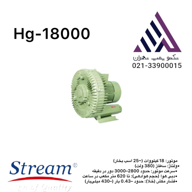بلوئر ساید چنل مدل HG-18000SB یکی از قدرتمندترین محصولات برند استریم (Stream) است که با توان 18 کیلووات و ساختار بدون روغن، گزینهای بسیار مناسب برای مصارف صنعتی و تخصصی محسوب میشود. این دستگاه قابلیت کار بهصورت مکنده و دمنده را دارد و در صنایع مختلفی مانند تصفیه فاضلاب، پرورش آبزیان، صنایع غذایی، بستهبندی، چاپ و… کاربرد گستردهای دارد