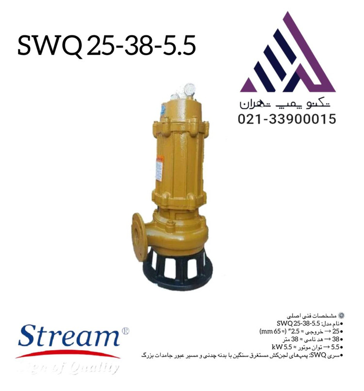 لجن کش بدنه چدن 2.5 اینچ استریم 38 متری مدل SWQ 25‑38‑5.5