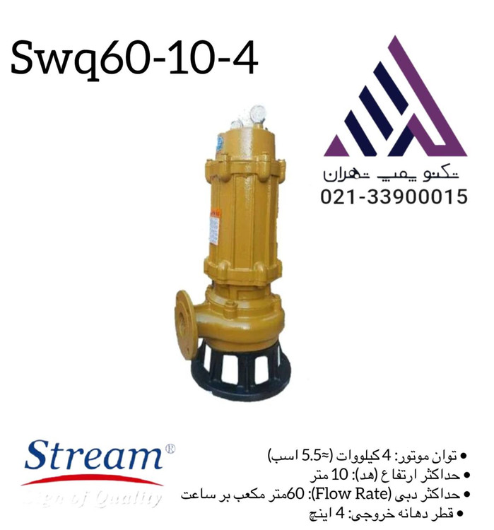 پمپ لجنکش استریم SWQ60-10-4 | خروجی 4 اینچ | 5.5 اسب | هد 10 متر | دبی 60 m³/h