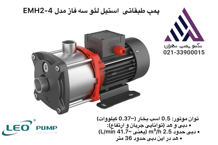 🔑پمپ لئو EMH 2-4، پمپ طبقاتی لئو، پمپ استیل سه فاز لئو، پمپ افقی استیل، پمپ افزایش فشار لئو، قیمت پمپ لئو EMH 2-4، مشخصات پمپ لئو، خرید پمپ طبقاتی استیل