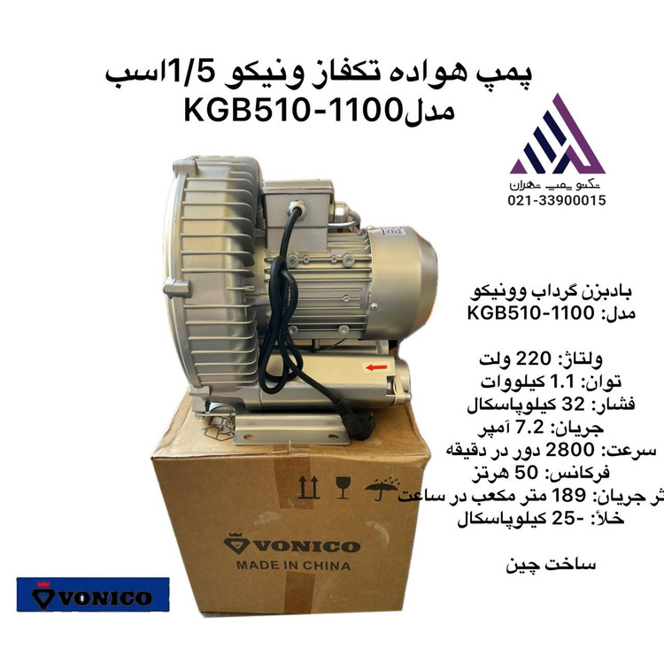 پمپ هواده ونیکو ( ساید چنل بلوئر ) تکفاز 1/5 اسب مدل KGB510-1100